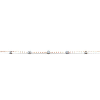 Social Value 18k Rose Gold Genuine Diamond Chain Diamond Cluster Station Layering Stacking Bracelet