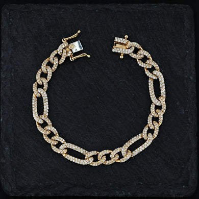Social Value 18k Solid Rose Gold Genuine Natural Diamond Heavyweight Figaro Link Reversible Chain Bracelet