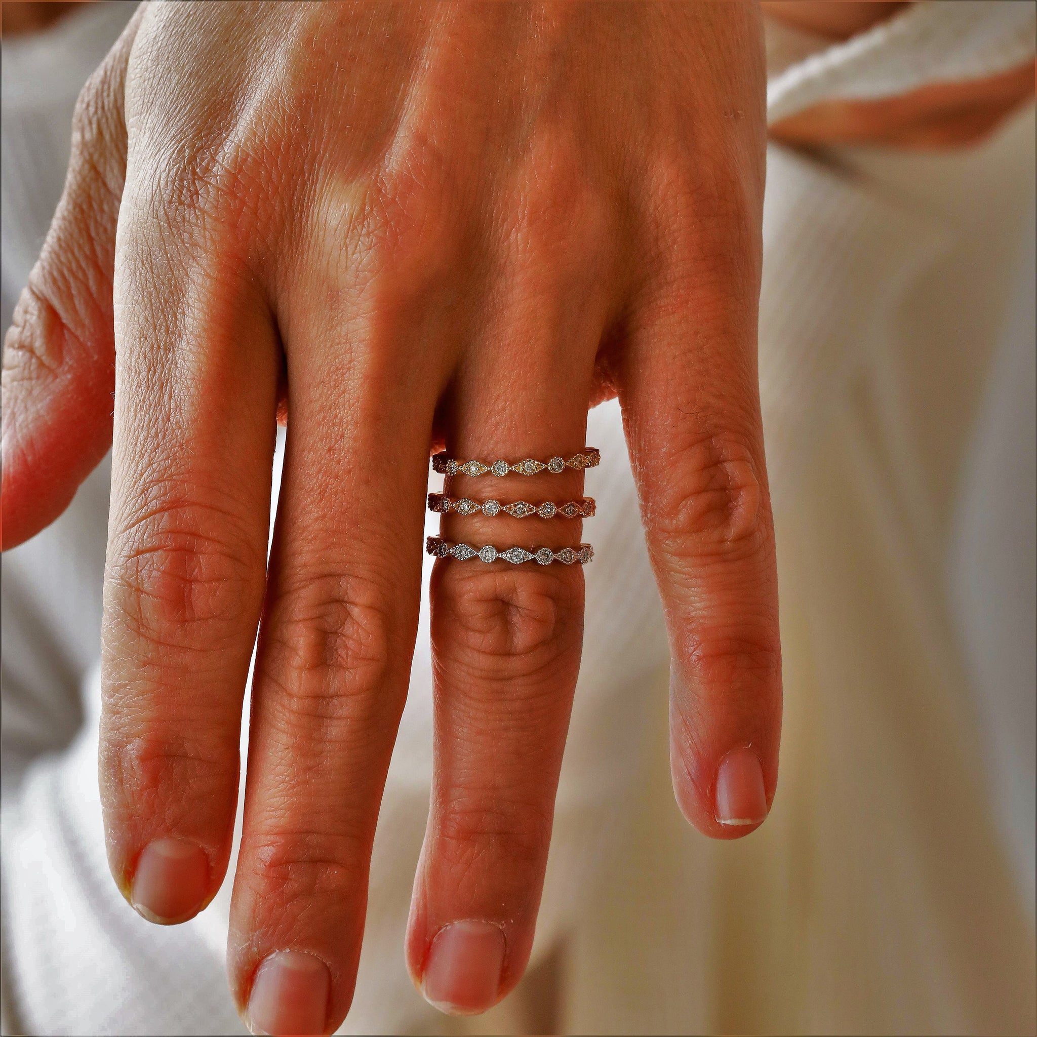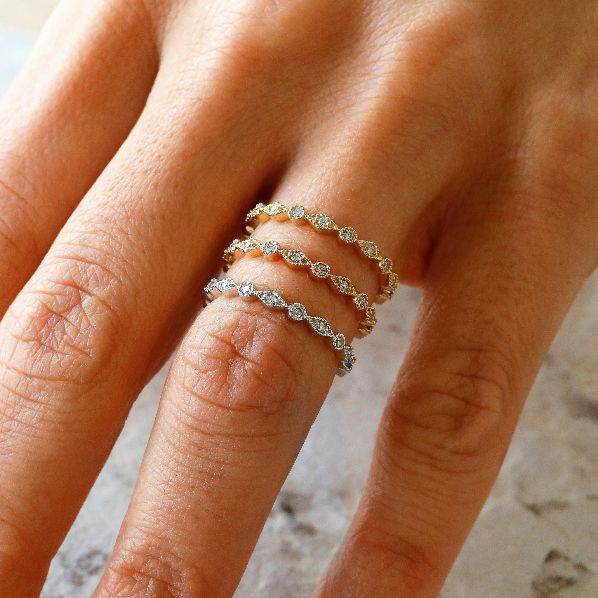 14k Solid Gold Genuine Diamond Art Deco Eternity Band Ring