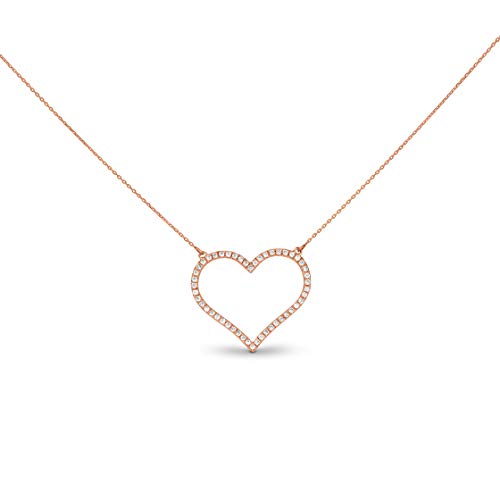 14k Solid Rose Gold Natural Diamond Open Heart Necklace, .25ct