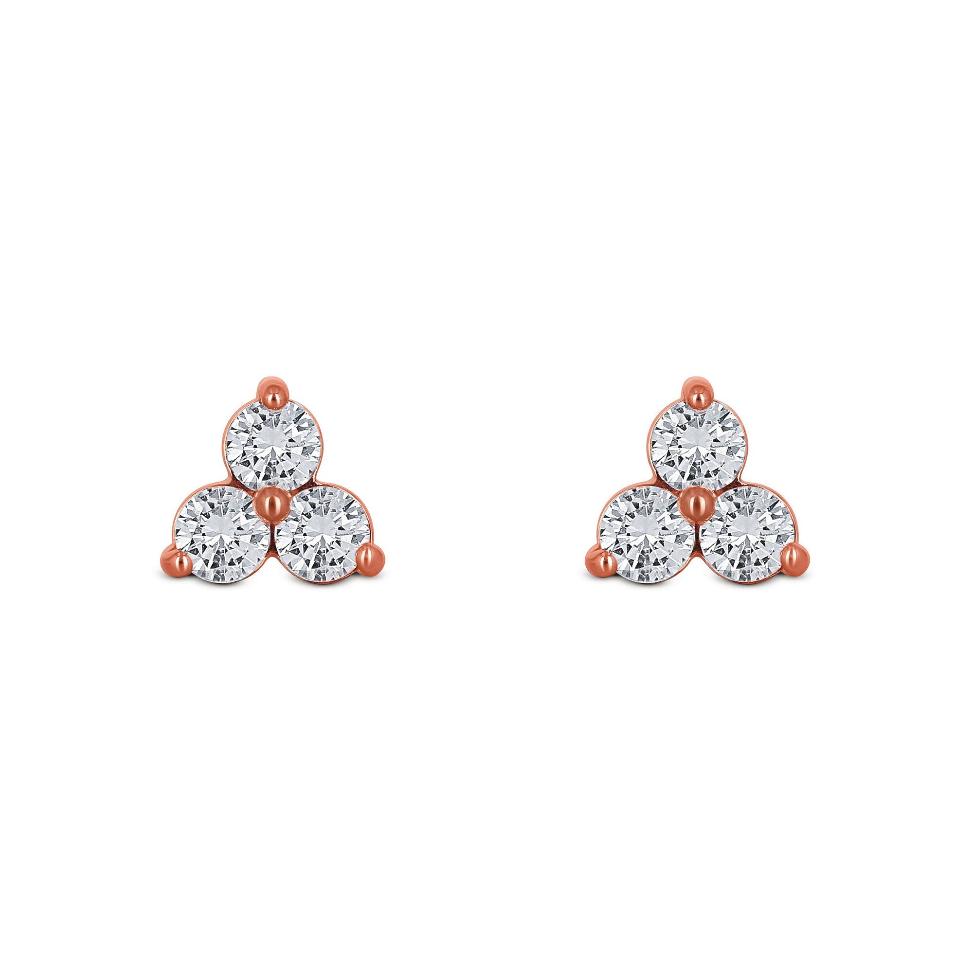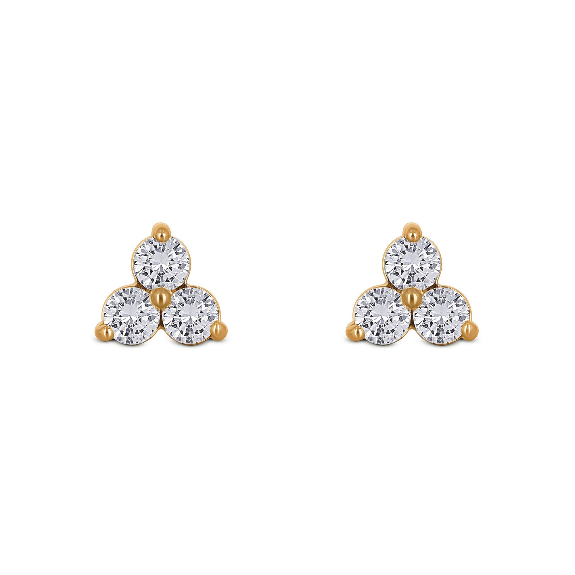 ♦ Minimalist Genuine Diamond Stud Earrings set in solid 14kt gold. Each earring consists of 3 high quality, prong set diamonds that are guaranteed to be white,