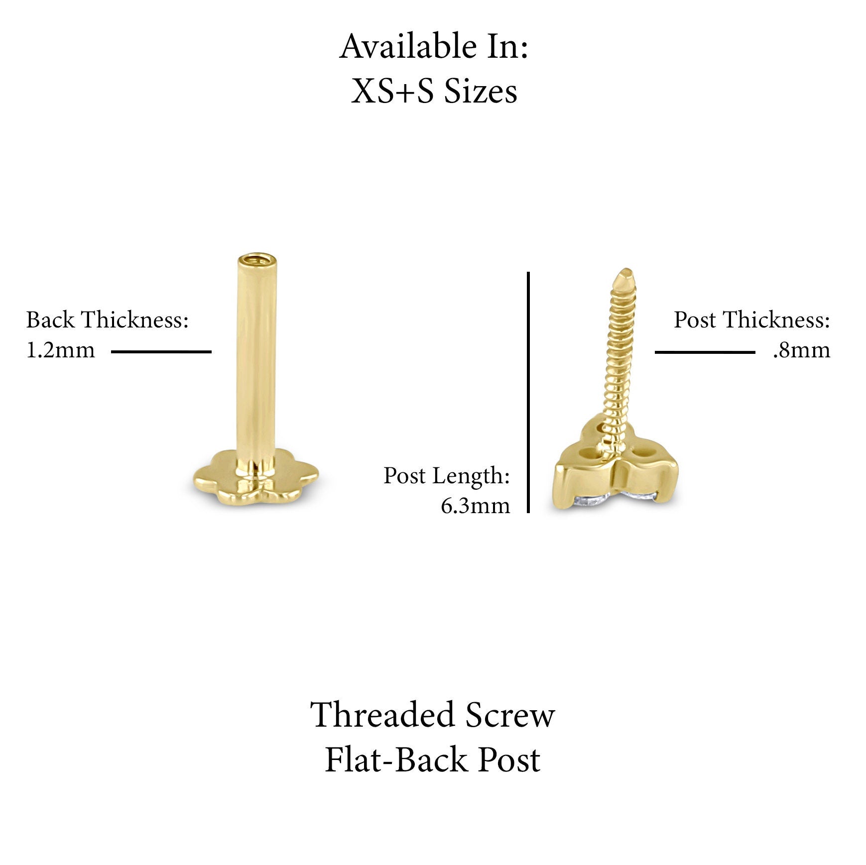 ♦ Flatback Screw Post: Length: 6.3mm | Width: .8mm | Width with screw-back on: 1.2mm