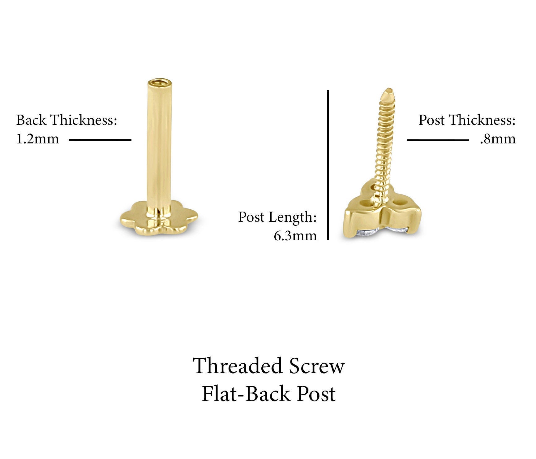 ♦ Flatback Screw Post: Length: 6.3mm | Width: .8mm | Width with screw-back on: 1.2mm