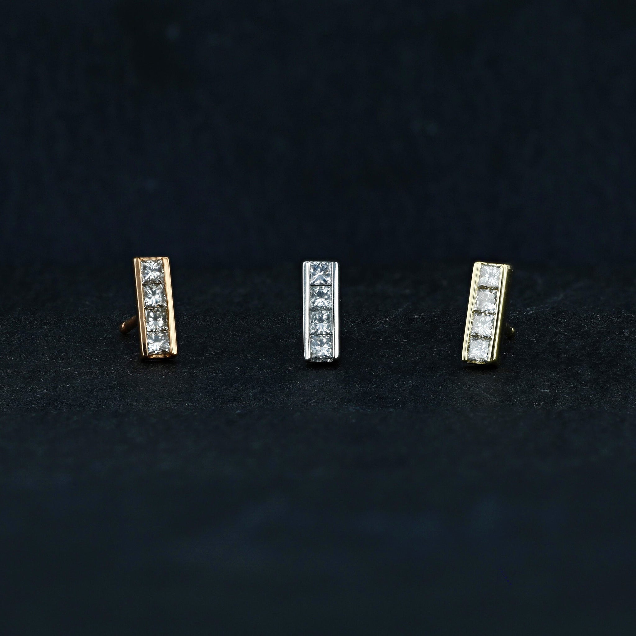 These beautiful minimalist bar stud earrings are made with natural earth-mined, conflict free diamonds.