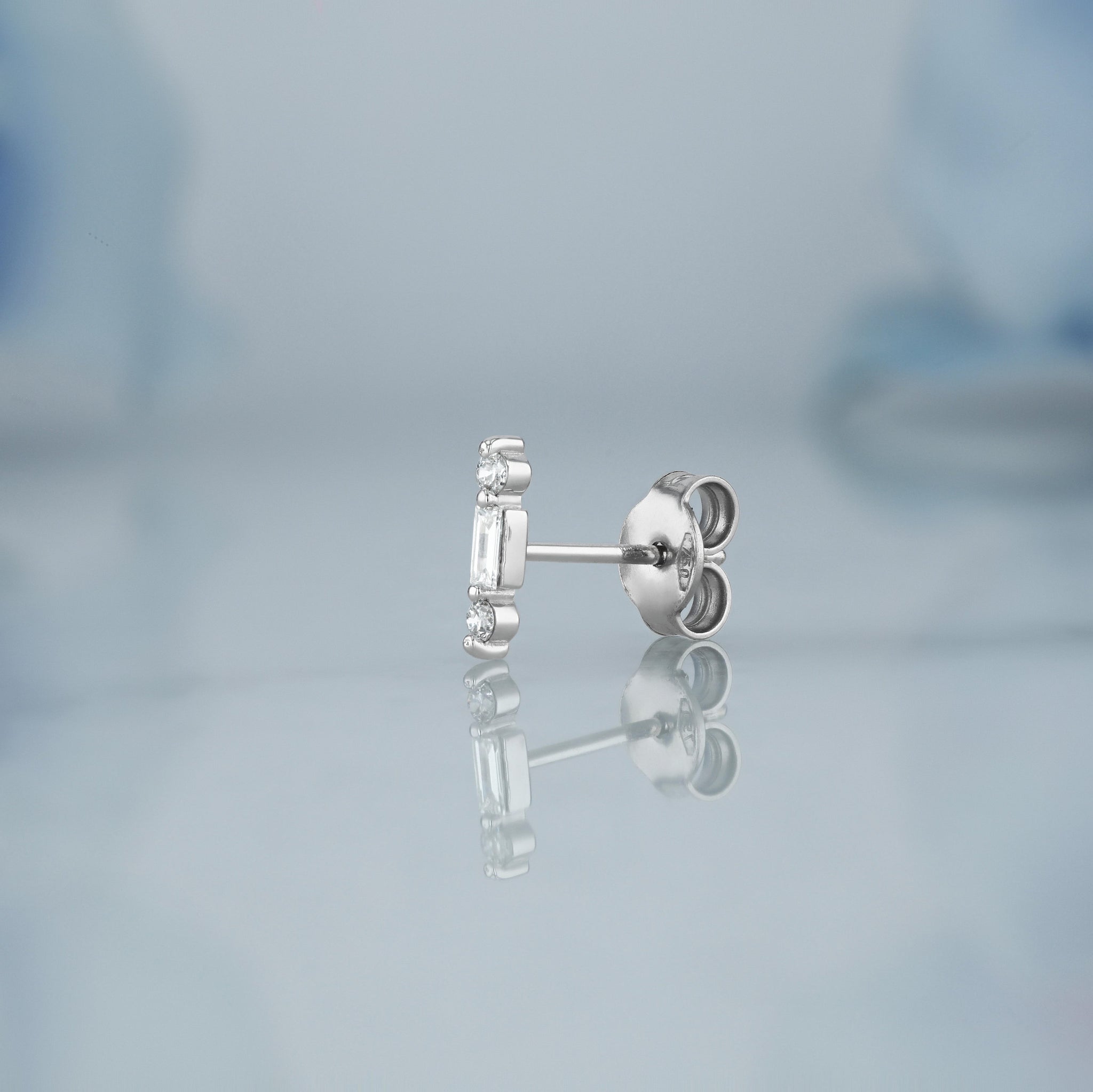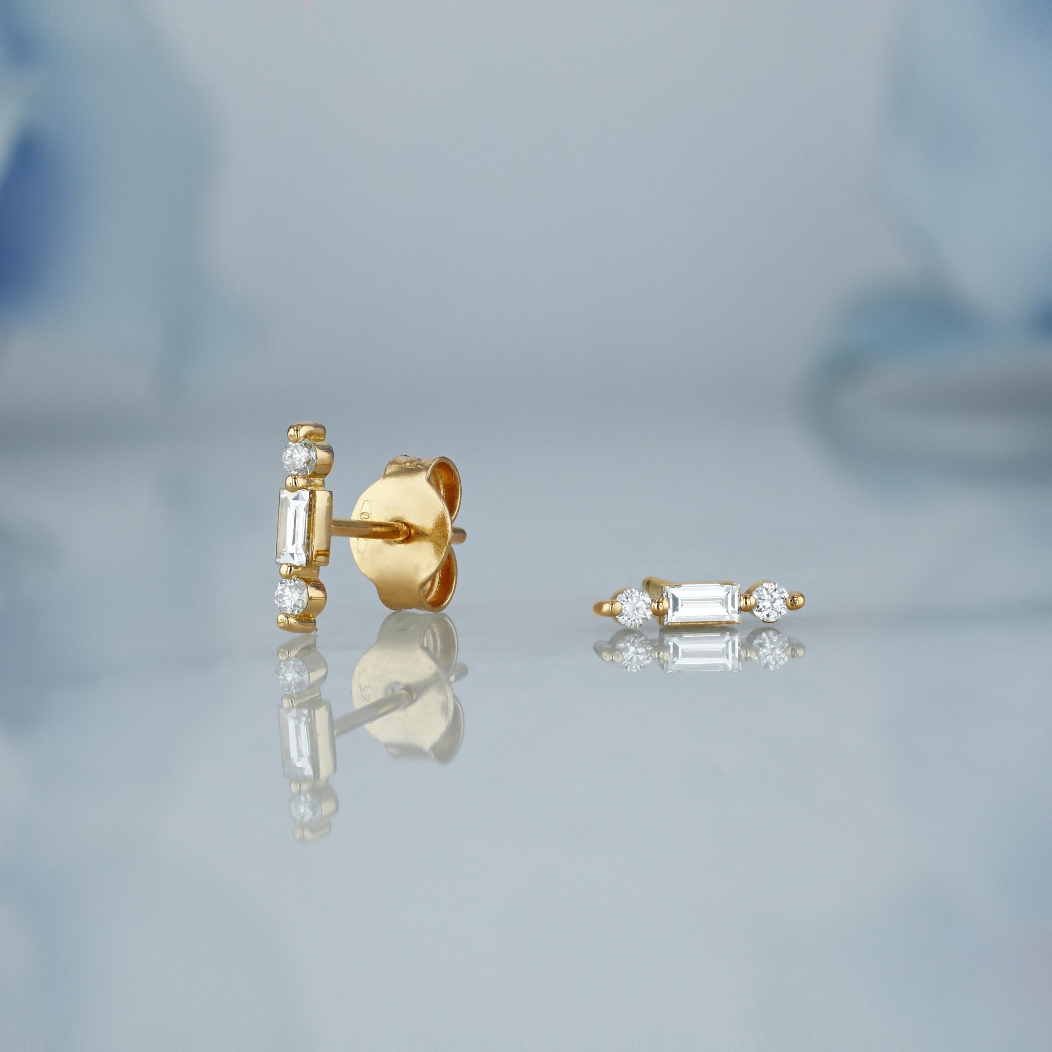 Single (Half Pair) 18k Solid Gold Diamond Baguette and Round Bar Earring Stud Climber Crawler