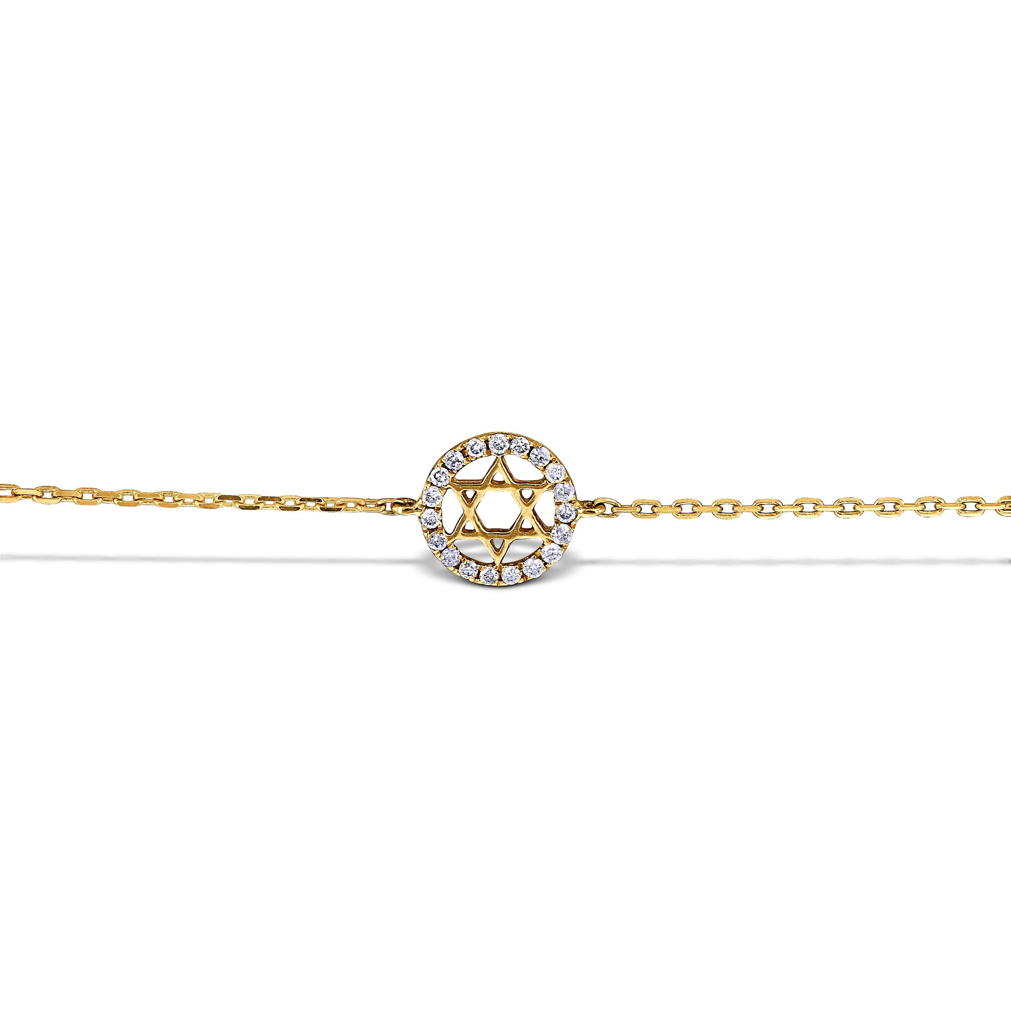 Social Value 14K Solid Gold Natural Diamond Star of David Bracelet