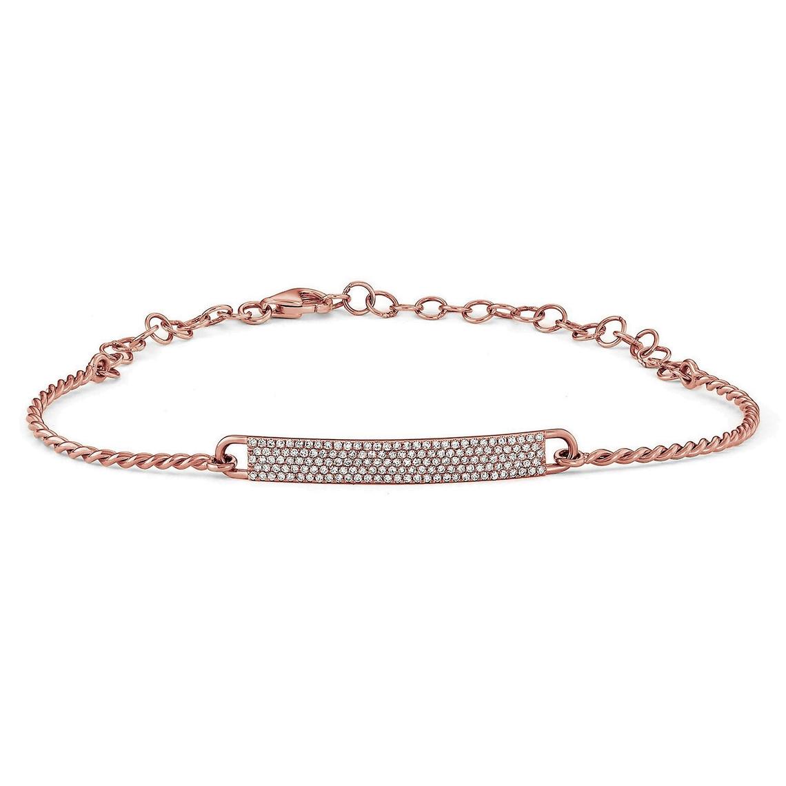 Social Value 14k Solid Gold Natural Pave Diamond ID Bar Bangle Bracelet