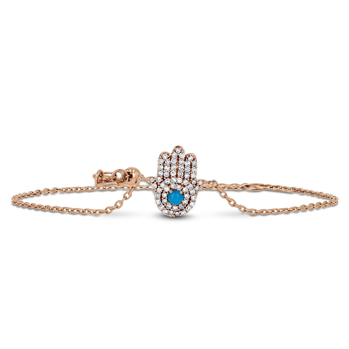 Social Value 18k Solid Rose Gold and Genuine Natural Diamond Turquoise Pave Evil Eye Bracelet