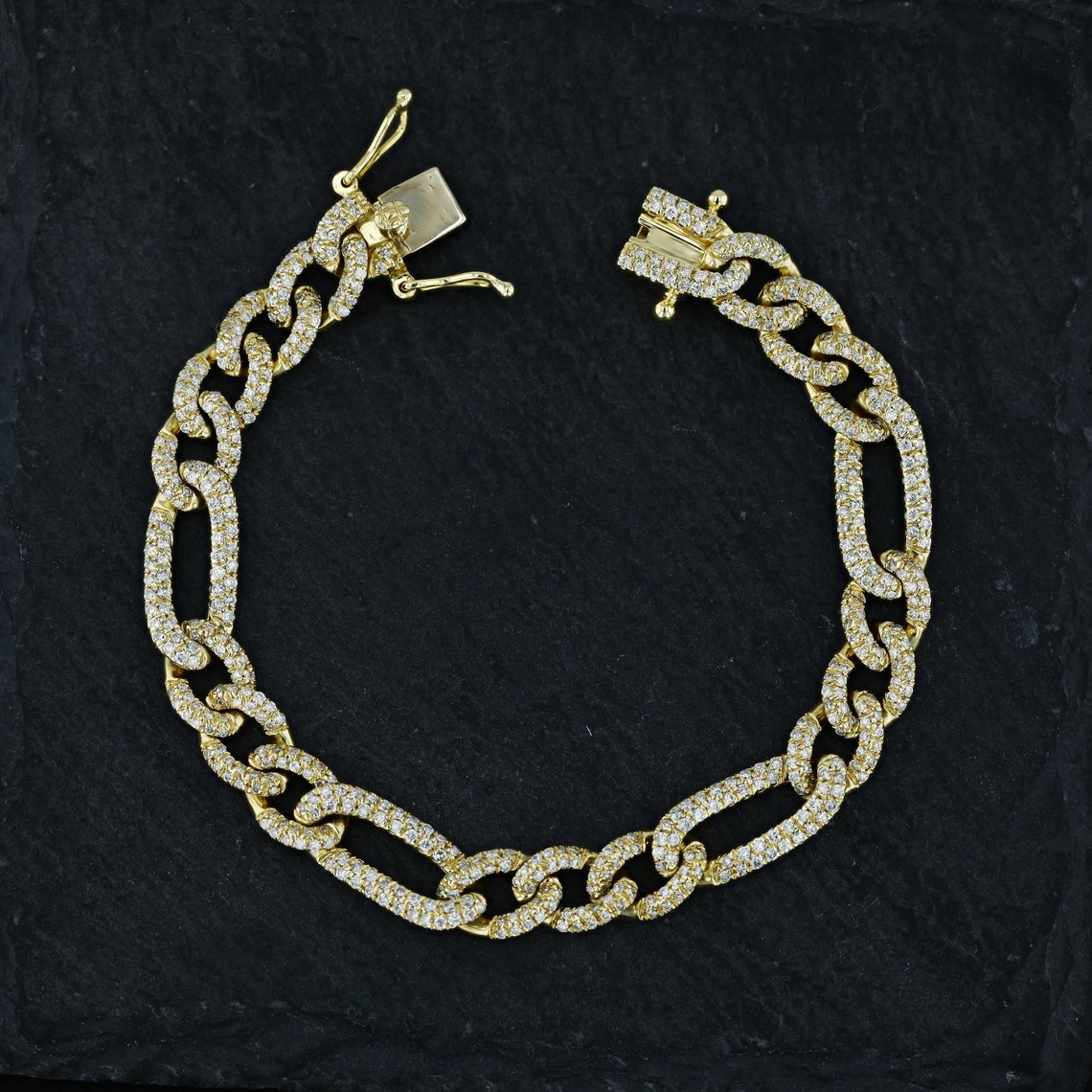 Social Value 18k Solid Rose Gold Genuine Natural Diamond Heavyweight Figaro Link Reversible Chain Bracelet